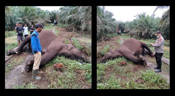 “Bangkai gajah berada di kebun sawit masyarakat yang berbatasan langsung dengan konsesi PT. Arara Abadi. Sedangkan gajah liar sub populasi Giam Siak Kecil saat ini masih terpantau berada di sekitar bangkai yang ditemukan tersebut, ” ungkapnya.