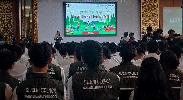 MP, PEKANBARU – Kapolda Riau Irjen Pol Herry Heryawan menjadi pemateri dalam kegiatan seminar bertema “Menjadi Generasi Penjaga Bumi (Green Policing)” di Sekolah Dharma Yudha tingkat SMP/SMA, Jalan S.M. Amin, Kota Pekanbaru, Senin (06/10/2025).