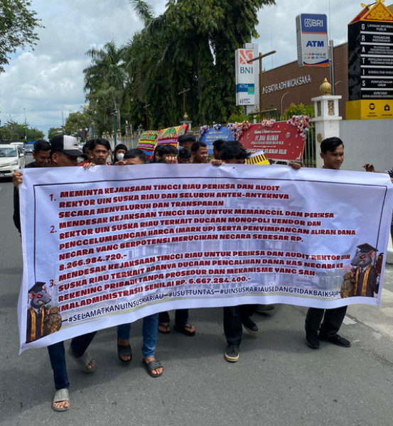 Mereka mendesak agar aparat penegak hukum segera memeriksa Rektor UIN Sultan Syarif Kasim (Suska) Riau terkait dugaan korupsi dan maladministrasi dalam pengelolaan dana pemerintah.